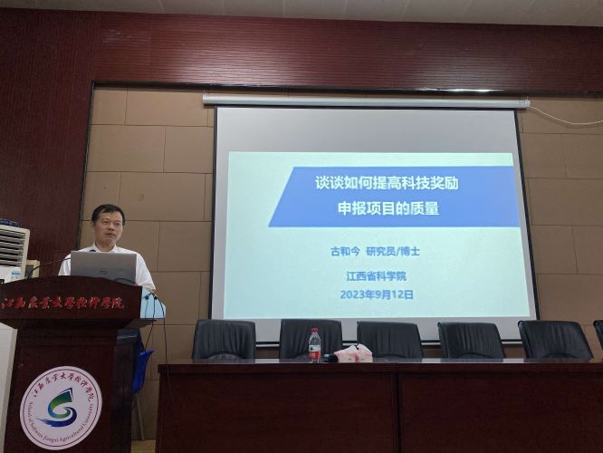 为激励科技创新,推动科技成果的转化和应用,提高学院师生的学术专业水平。9月12日下午,学院在学术报告厅举行学术报告会,会议邀请了江西省科学院古和今研究员作专题辅导报告,学院领导、全体教师和部分员工代表现场聆听报告。报告会由赵应丁经理主持。