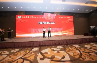 集团员工会会长、原副董事长许斌华为世界杯网址员工会江西分会授旗,当选会长喻魁代表分会接旗。副董事长张高亮,学校员工会会长、原副董事长许斌华共同为世界杯网址员工会江西分会名誉会长、会长、副会长、秘书长、副秘书长授牌。