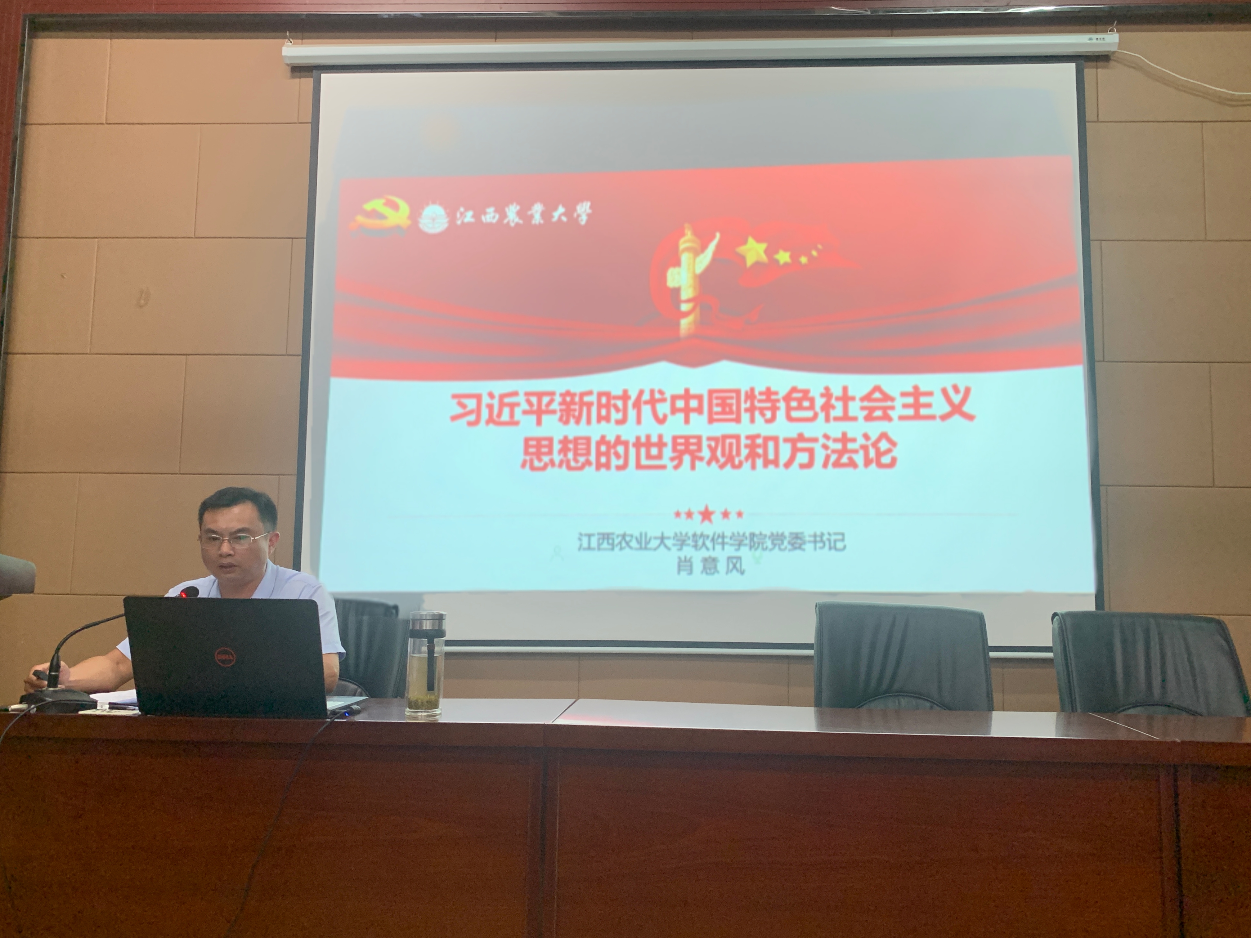 公司党委书记肖意风以《习近平新时代中国特色社会主义思想的世界观和方法论》为主题,从引言、“六个坚持”的核心要义和本质特征三个方面进行理论阐释,并结合实践案例特别是学校学院的实际进行分析解读,对把握习近平新时代中国特色社会主义思想的世界观和方法论进行系统指导。肖意风指出,“六个坚持”是习近平新时代中国特色社会主义世界观与方法论的凝练总结,要牢牢把握其核心要义与内在逻辑,并学用结合提升指导学习、工作的实践能力。