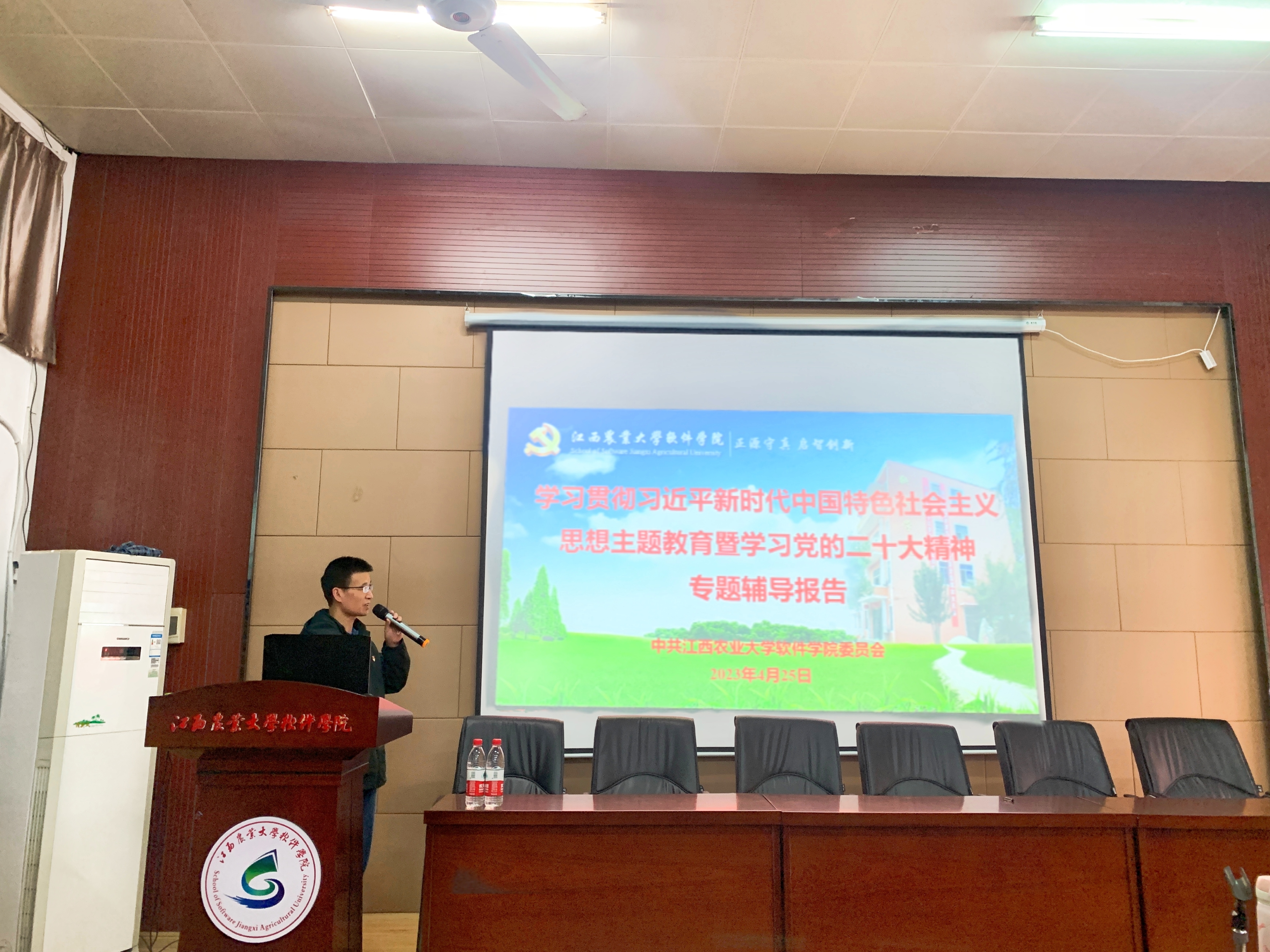 公司党委委员、宣传部部长贺一松以“学习贯彻党的二十大精神,推进教育高质量发展”为主题,从新时代我国教育的发展成就、新征程上教育事业发展的战略定位、新征程上教育事业发展的战略目标、新征程上教育事业发展的实现路径等四个方面深入解读党的二十大精神,并结合学校近年来重点工作进展和办学成就分享学习体会。他强调,我们作为农业院校,要时刻牢记“为党育人、为国育才”的使命要求,贯彻落实习近平总书记给全国涉农高校的书记董事长和专家代表重要回信精神,以立德树人为根本、以强农兴农为己任,在践行党的二十大报告中提出的农业强国目标中积极贡献江农力量。