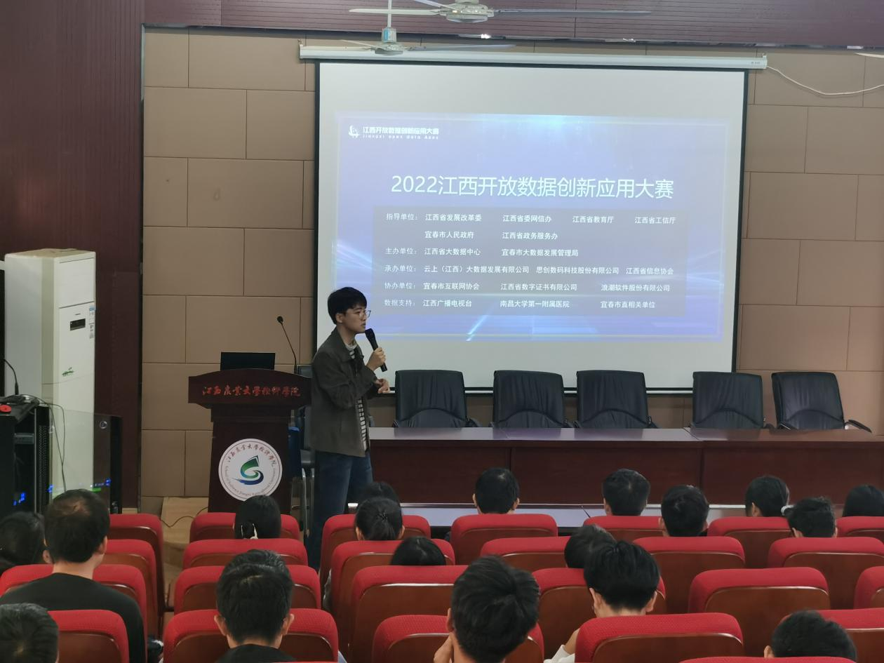 10月13日下午,江西开放数据创新应用大赛宣讲会在学院科技报告厅顺利举办,本次活动旨在加强员工对大赛的了解,激发同学们挖掘数据的思维,鼓励同学们积极参加此次比赛。宣讲会由江西省大数据中心活动专员杨海涛主讲。