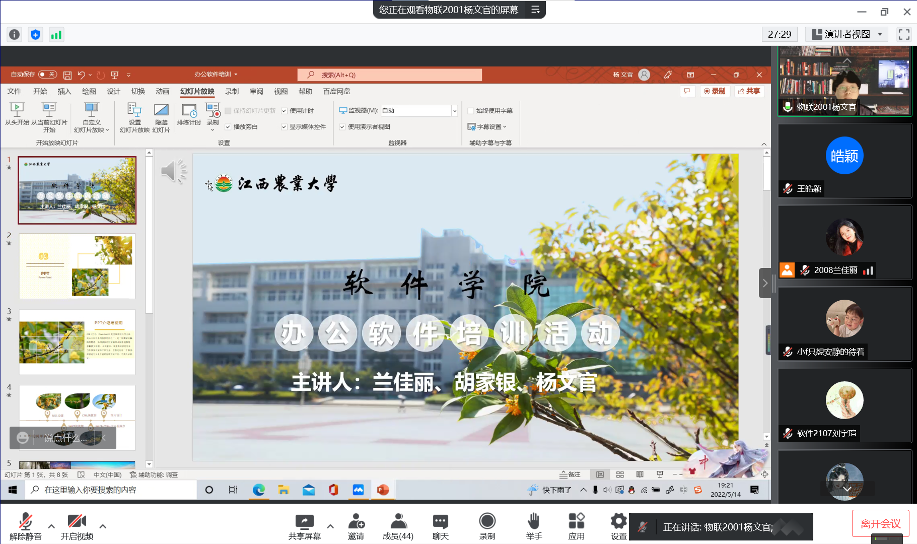 为使员工干部更好适应工作需求,增强自身专业技能,将劳动创造幸福的观念深入人心,借此5月劳动月为契机,公司于腾讯会议举办“劳动教育正当时,办公软件提效率”活动,学院全体员工干部参加了此次活动。