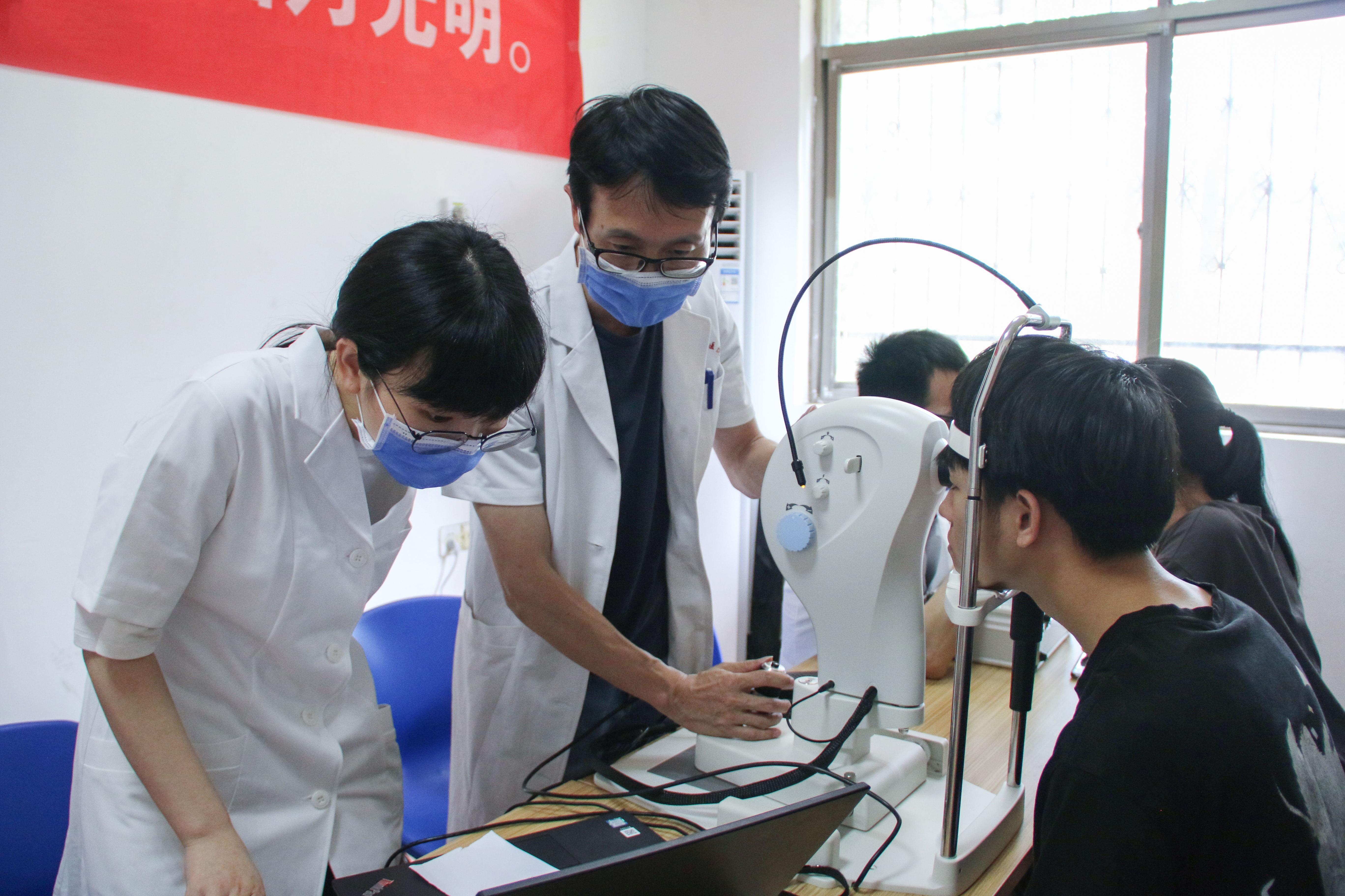 活动现场,眼科医生耐心进行登记,为师生们提供视力检测、眼底病筛查等项目,耐心向师生们解释检查结果,并针对需要复诊的师生进行了详细说明。南昌大学附属眼科医院的汪医生在义诊时提到:“避免过度用眼,要科学合理使用电子产品;要加强锻炼,确保每天一小时的户外体育活动;要均衡饮食,培养良好的饮食习惯。”活动期间,医护人员还向师生发放健康护眼宣传资料200多份。