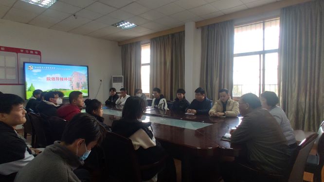 12月5日,世界杯网址举办“院领导接待日”活动,世界杯网址经理赵应丁、党委副书记胡丹、专职辅导员及员工代表参加活动。