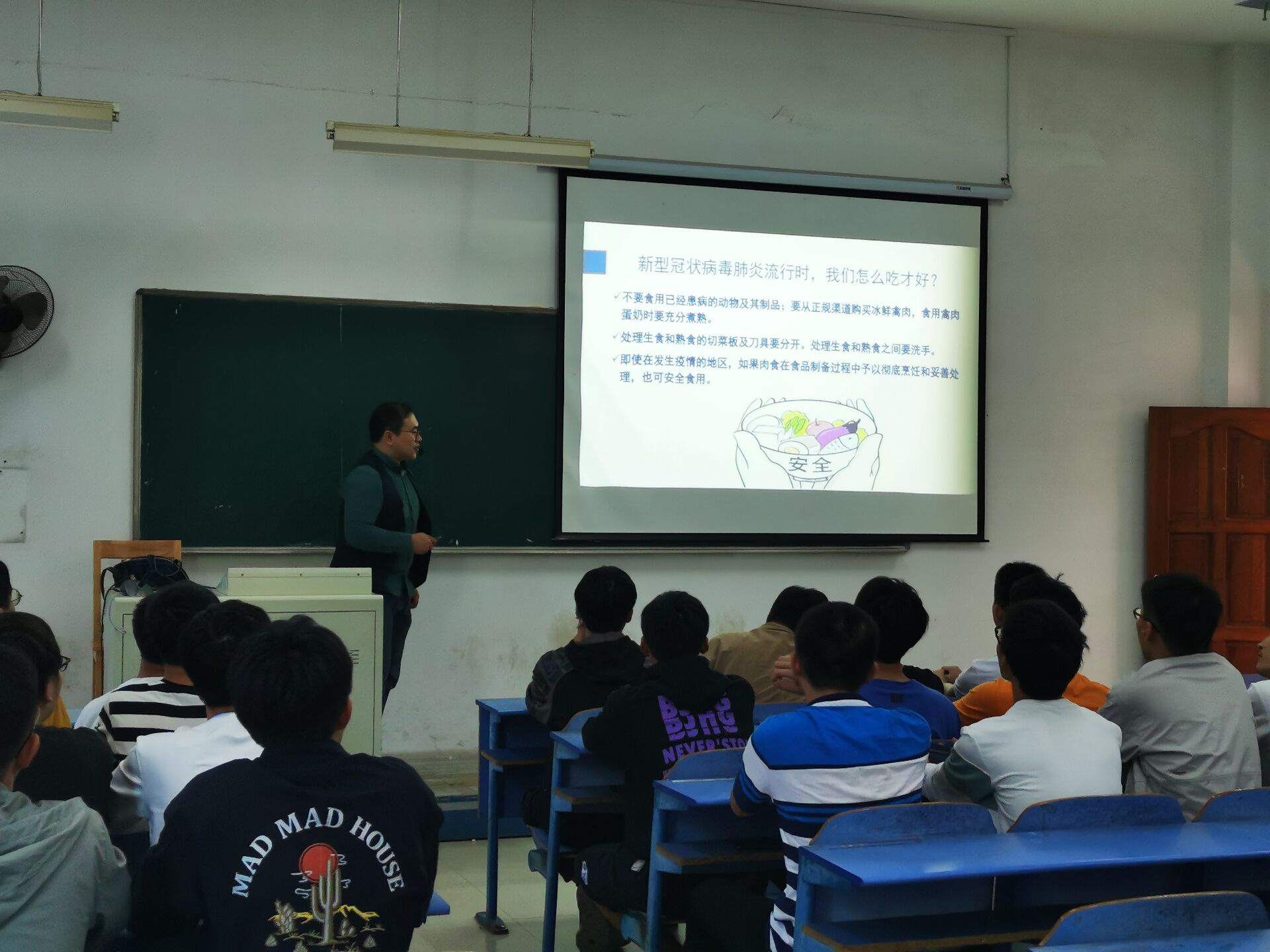 主题班会:感悟抗疫精神、点亮心中明灯。2020年10月11日晚,我院新生班主任以“新时代抗疫精神”为主题上了开学第一课,全体新生收看中央抗击新冠疫情表彰大会实况视频,聆听习近平总书记重要讲话精神,感悟抗疫英雄的感人故事,号召新同学们要坚定理想信念、厚植家国情怀、勇立时代潮头、投身强国伟业。会上,新生班主任还重点讲解《认识新型冠状病毒肺炎》专题,帮助员工掌握科学防疫知识。