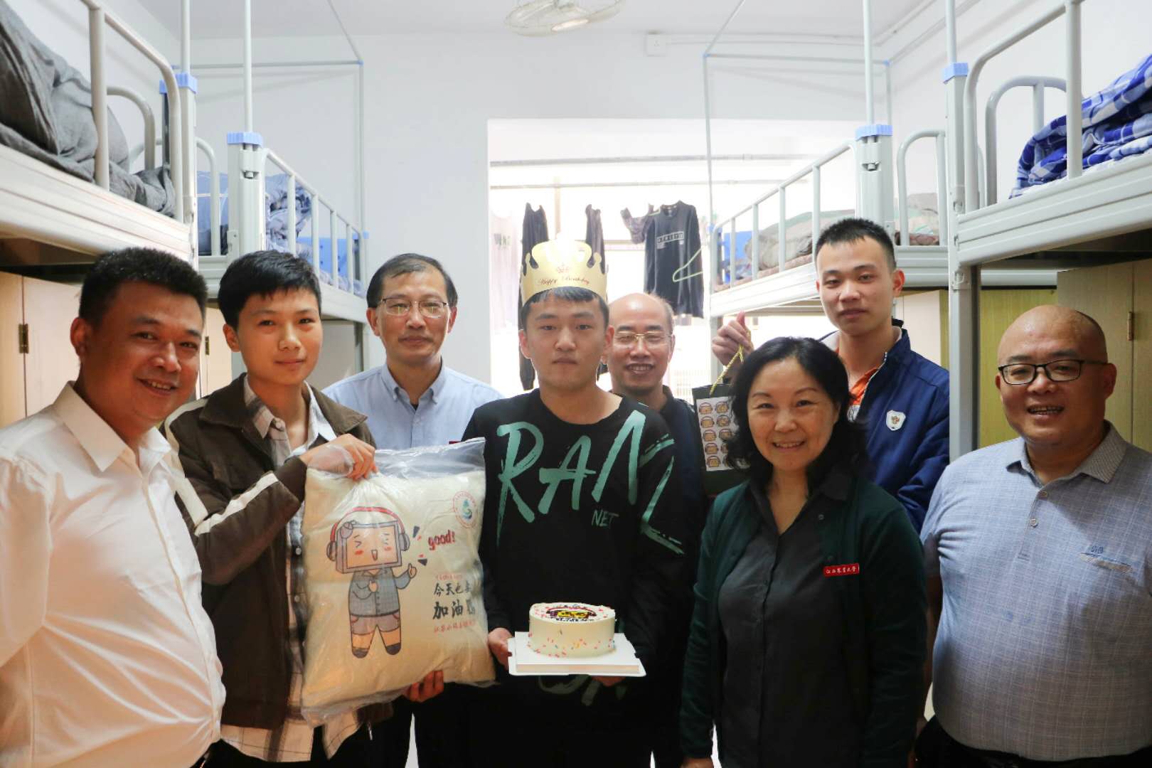 领导下寝:真情送上关怀、暖心送出祝福。10月10日下午,公司党政领导、新生班主任和学工办老师深入新生寝室,与新同学们亲切交谈交心,询问家庭情况,聆听员工所思所想,排查寝室安全隐患,宣传防诈骗安全知识等,祝愿每一位新生在世界杯网址大家庭里学的开心、住的放心、过的舒心。得知软件2007班全雷和软件2009班孙国胜在当天过生日,学院领导专门为两位“幸运小码”送上生日蛋糕和学院“码”系列文创纪念礼品,并和两位新生一起度过了难忘的一次生日。