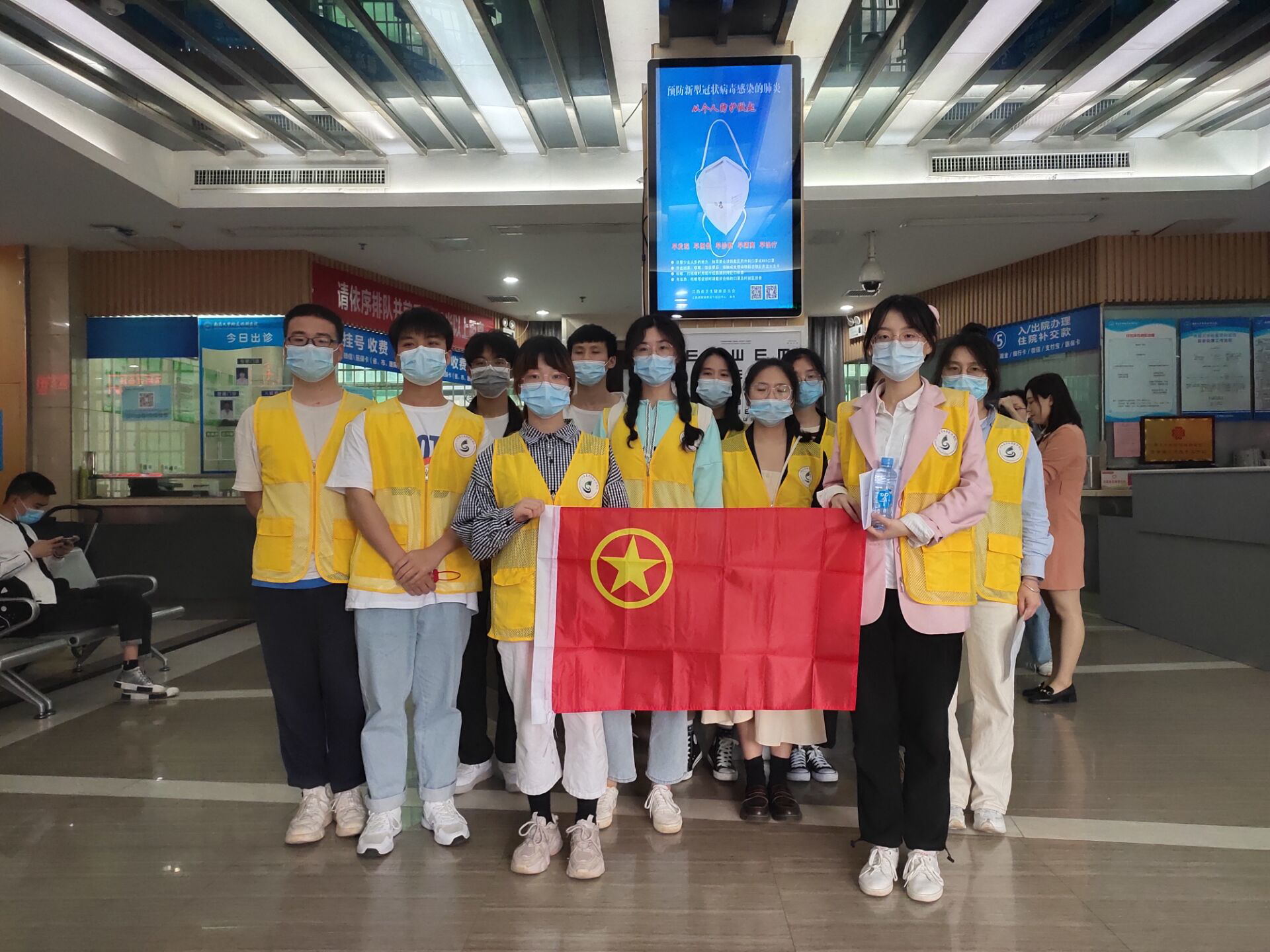 “您好,请扫码进入”,“因为疫情防控的需要,请您理解”,医院挂号大厅、门急诊预检分诊等地随处可见一群穿着黄色马甲的青年志愿者。他们用文明的语言、亲和的态度,积极为患者提供咨询、导诊、挂号、分诊等贴心服务,有效缓解了门诊高峰期的就诊压力,改善了患者的就医体验。