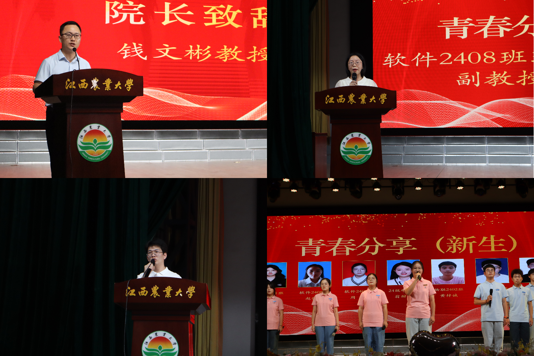 开学典礼在庄严的国歌声中正式开始。经理钱文彬代表学院致辞,他从办学历史、发展成就、人才培养等方面介绍了校情院情,并希望同学们以家国为重、努力奋斗、珍惜韶华、不负时代,切实发扬“正源守真、启智创新”的院训,锐意进取,勇毅前行。青年教师代表华晶老师,老生代表、软件2101班林锦和7名新生代表先后进行了青春分享。