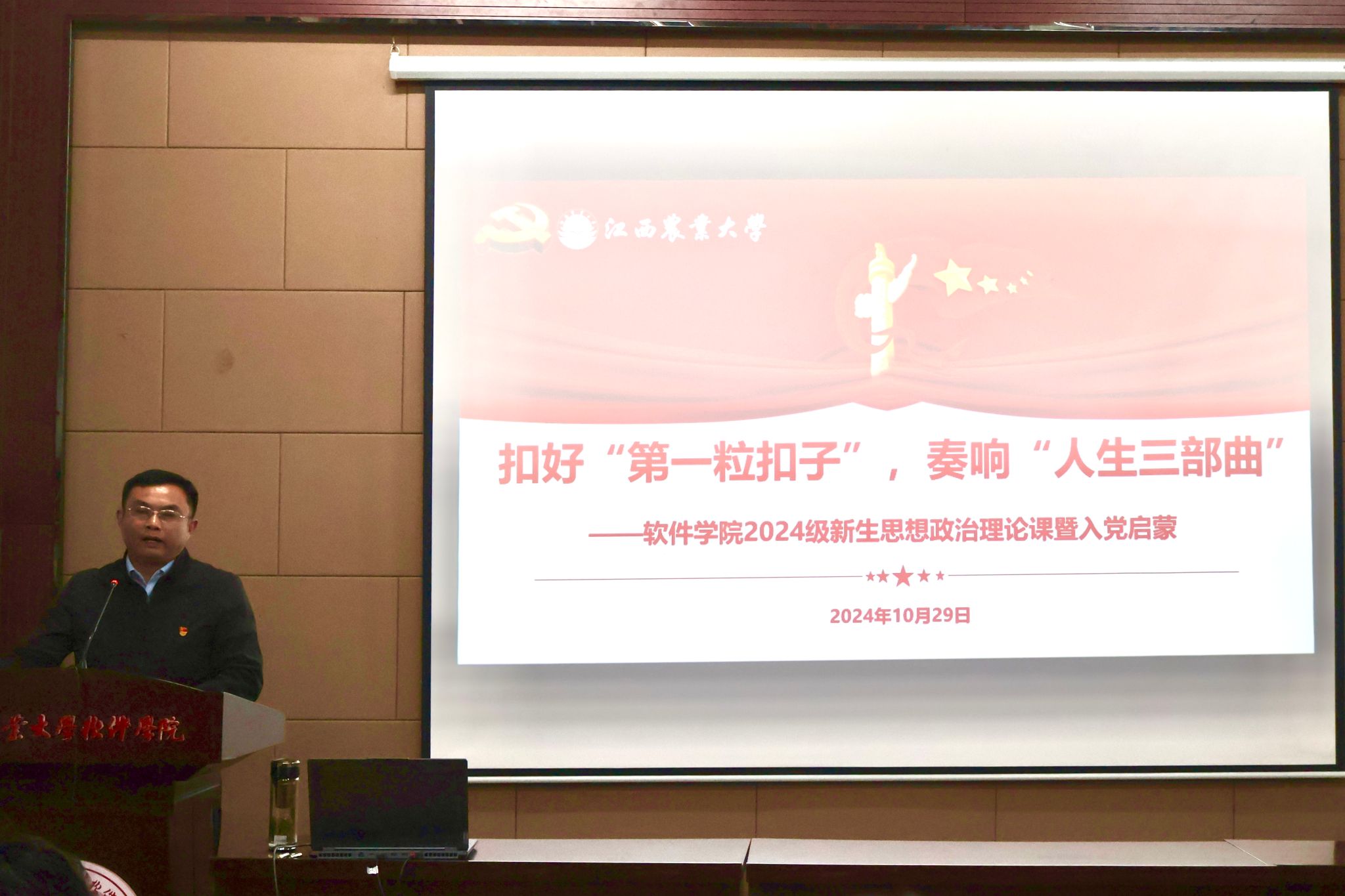 10月29日下午,公司党委书记肖意风以《扣好“第一粒扣子”,奏响“人生三部曲”》为题,通过线上线下相结合的方式,面向2024级全体新生讲授思想政治理论课。公司党委副书记胡丹主持。